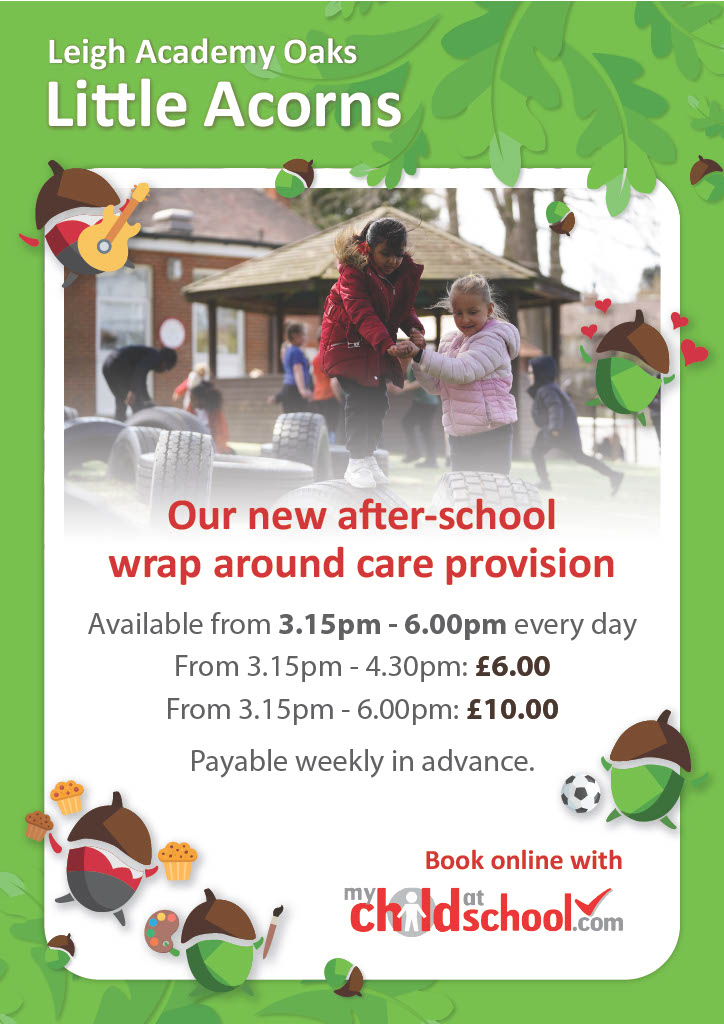 After School Club at Leigh Academy Oaks is open to all children from Reception to Year 6.